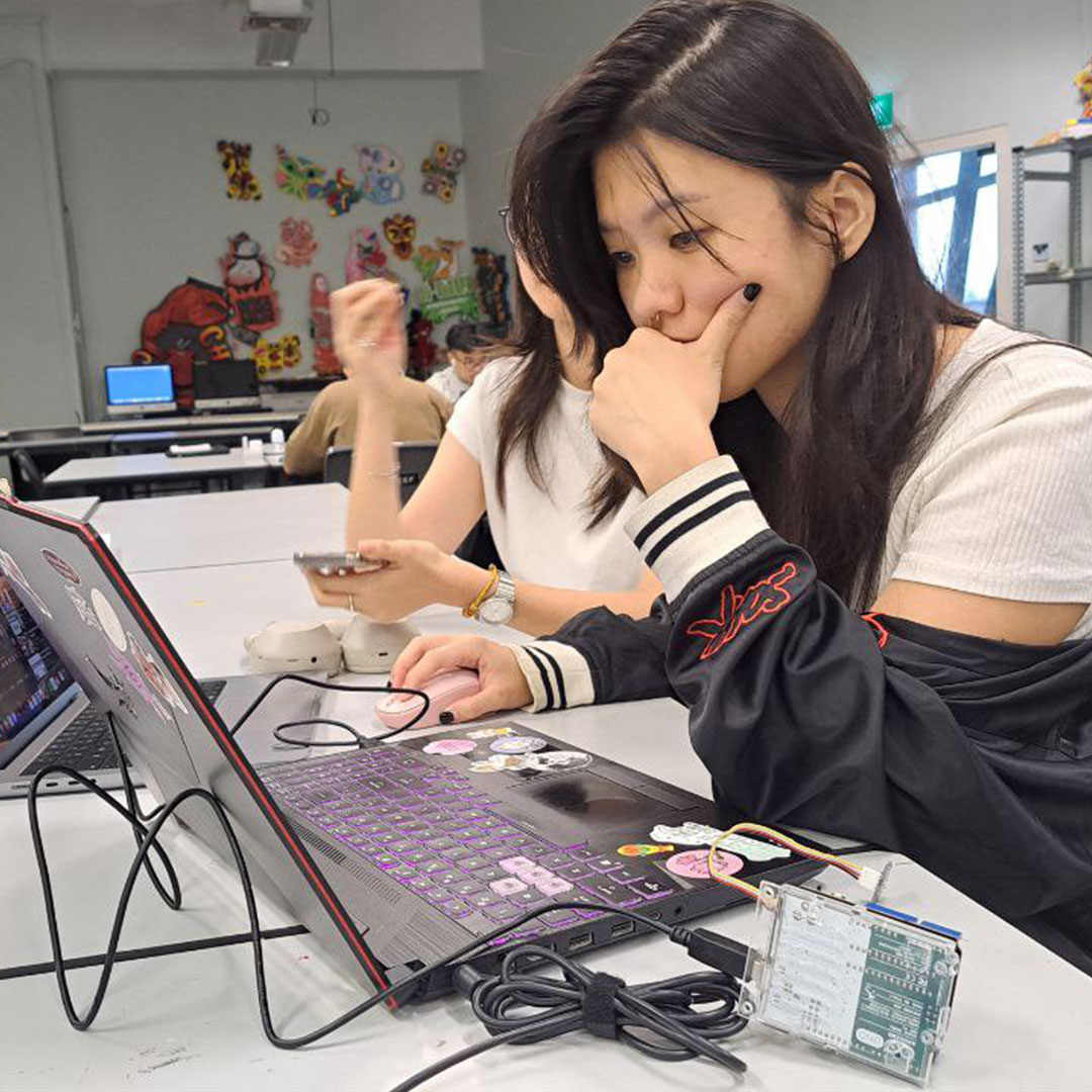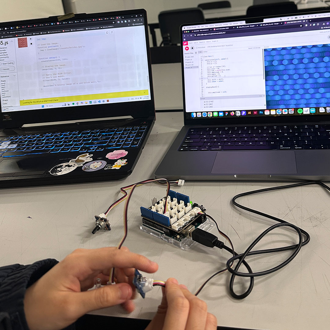 This project was a rollercoaster of excitement, frustration, and discovery. Relearning Arduino was fun, but linking it with p5.js made it even more interesting. We hit so many roadblocks—connectivity issues, reversed values, and struggling to control the visuals—but each challenge pushed us to problem-solve and refine our approach. Revisiting the basics of arrays and conditional statements reminded me how important a strong foundation in code is. Most of all, I learned that even a simple idea can evolve into something far beyond what we expected. And seeing our peers engage with our installation, trying to figure out the "magic" behind it, made all the struggles worth it.