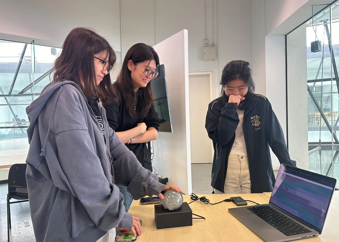 Using an Arduino-powered light sensor concealed within the crystal ball, the system detects changes in ambient light when a user cups their hands around it. This data is then transmitted to p5.js, where a dynamic visual representation of the aura is generated in real time. As the hands move closer or adjust their position, the on-screen aura visualization shifts in intensity and colour, creating an immersive and mystical interaction.